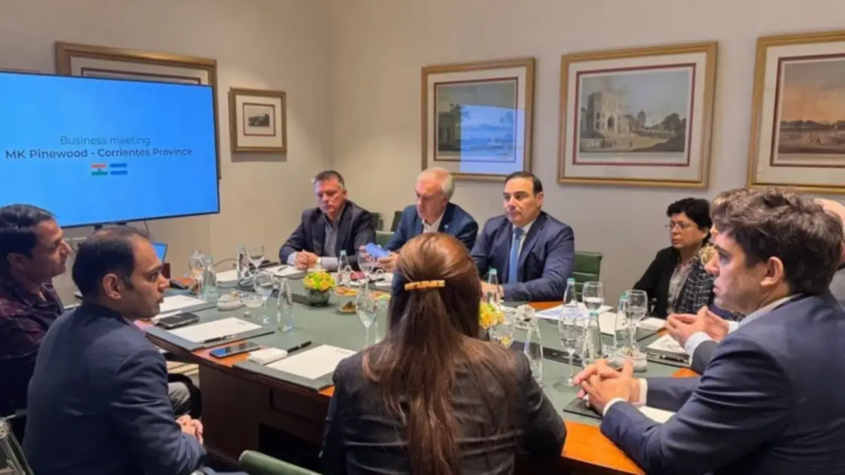 En Nueva Delhi, el gobernador Gustavo Valdés presentó este martes el potencial maderero de Corrientes ante directivos de la firma MK Pine Wood. El objetivo del encuentro fue fortalecer los vínculos comerciales entre la provincia y la India.