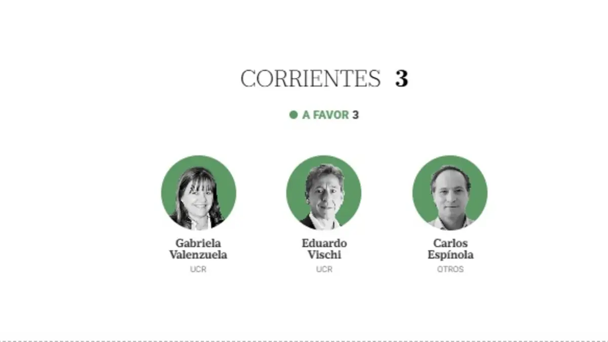 Para ayudar a Milei con su iniciativa, hubo varios votos de Corrientes. De los 7 legisladores correntinos en la Cámara baja, cuatro adhirieron al nuevo sistema: Lisandro Almirón (LLA); Virginia Gallardo (LLA); Diógenes González (UCR); Federico Tournier (ELI-LLA). En contra Raúl Hadad (PJ); Nancy Sand (PJ); Cristian Zulli (PJ)