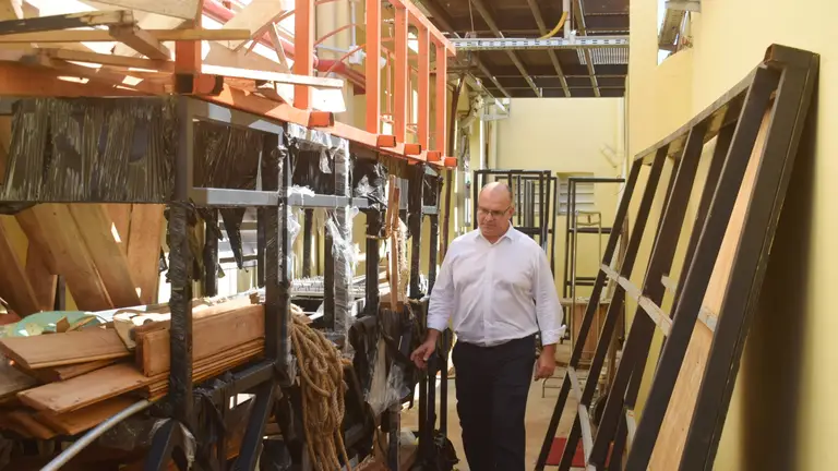 El ministro de Obras y Servicios Públicos, Jorge Meza, visitó este miércoles el Teatro Oficial Juan de Vera, donde supervisó el estado de las obras inauguradas el año pasado y destacó el buen nivel de mantenimiento del edificio.