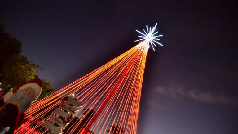 El mismo tiene 10 metros de altura y 8 de diámetro, mientras la base está adornada con imágenes de Papá Noel y regalos.