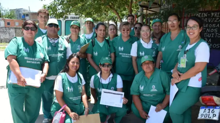 En el barrio Virgen de los Dolores, sobre avenida Gutnisky, agentes de la Dirección de Operativos Sanitarios, APS, hicieron visitas a los domicilios para tomar datos y verificar la situación de la zona.