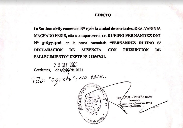 Detalles de EDICTO MERCEDES PRESUNCIÓN en Corrientes | Clasificados El Litoral