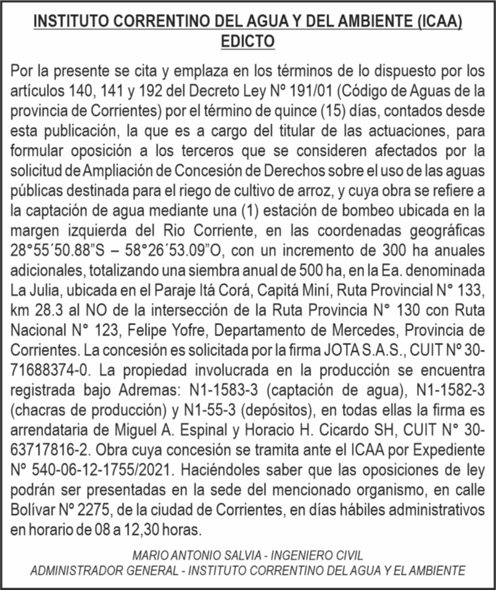 Detalles de EDICTO ICAA en Corrientes | Clasificados El Litoral