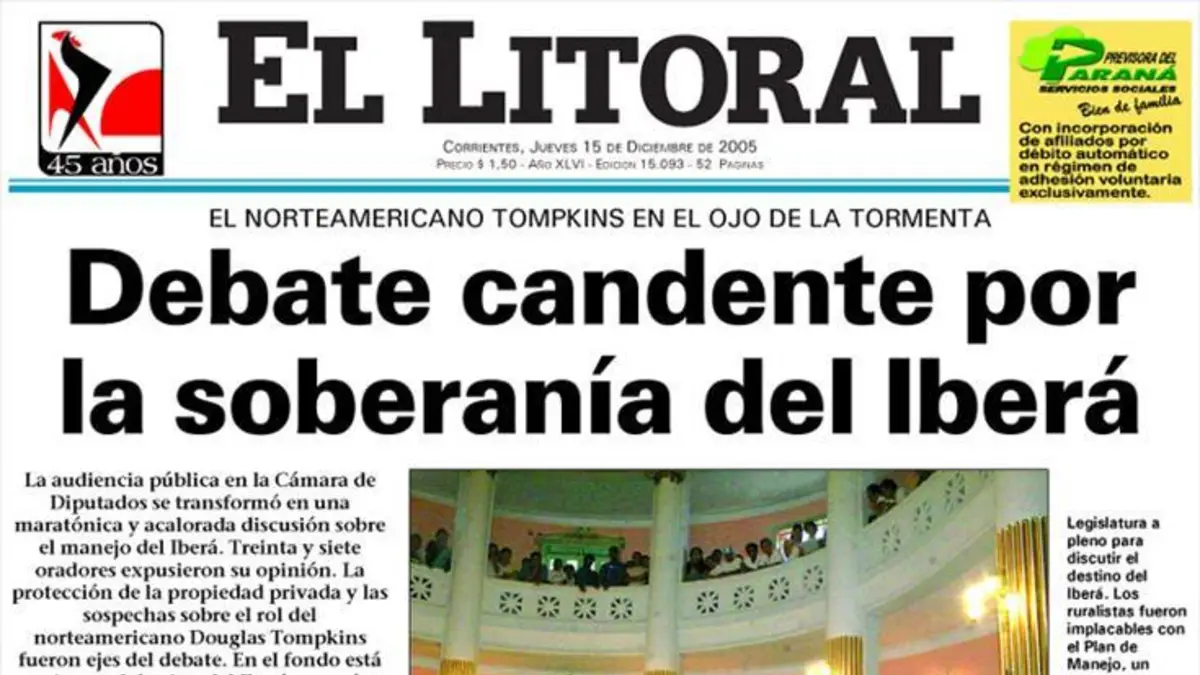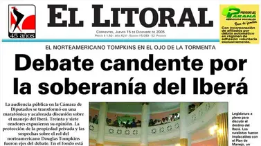 Tapa Impresa del Diario El Litoral del jueves 15 de diciembre del 2005