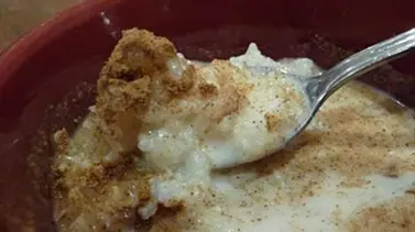 Puede servirlo en plato, acompañándolo con dulce de leche, compota de pera, manzana o ciruelas pasas, castañas cocidas en leche azucarada, dátiles descarozados, higos en almíbar. Al arroz se le puede versar caramelo liquido o azúcar blanca luego quemarla con llama de soplete.