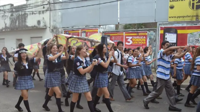 Con batucada y bengalas, estudiantes de la promoción 2013 del Colegio General San Martín, por ejemplo, marcharon sobre las calles rumbo a la plaza para celebrar el fin del cursado. Aunque oficialmente, el calendario vigente señala el 13 de diciembre como último día de clases.
