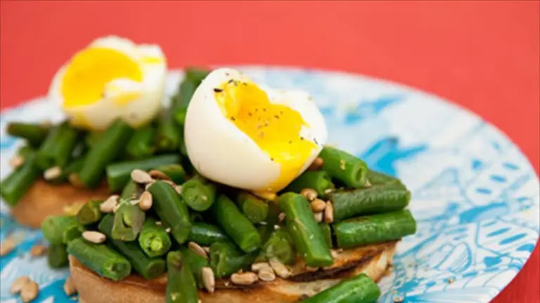 Cocinar los huevos en una olla a partir de agua fría y contar 5 minutos a partir de que empiece a hervir. Retirar del agua de cocción y pelar bajo agua fría. Servir la ensalada de chuchas sobre una tostada de pan de campo y colocar por encima el huevo poché.