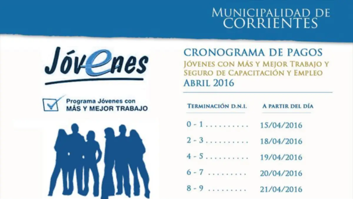 El pago de Jóvenes con Más y Mejor Trabajo (JMyMT) y Seguro de Capacitación y Empleo (SCyE) se iniciará el próximo viernes 15 de abril.