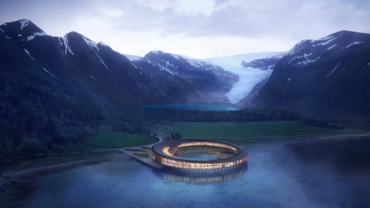 El hotel, que abrirá sus puestas en 2021, está en un entorno inmejorable. Se extenderá desde la costa al pie de la montaña Almlifjellet, hacia las aguas cristalinas del fiordo Holandsfjorden. Es el sueño de todo turista preocupado por el medio ambiente ya que cumplirá dos premisas: será el primer hotel Powerhouse del mundo y tendrá un impacto medioambiental mínimo.