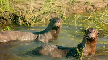 Alondra y Coco son la primera pareja de nutria gigante que vuelve al Iberá. La hembra llegó desde Hungría en julio del 2019 y el macho desde Dinamarca, en febrero de este año. Desde entonces, hubo un período de cuarentena previo, están conviviendo en un corral de presuelta y existe una gran expectativa ante la posibilidad de que estén en camino las primeras crías.
