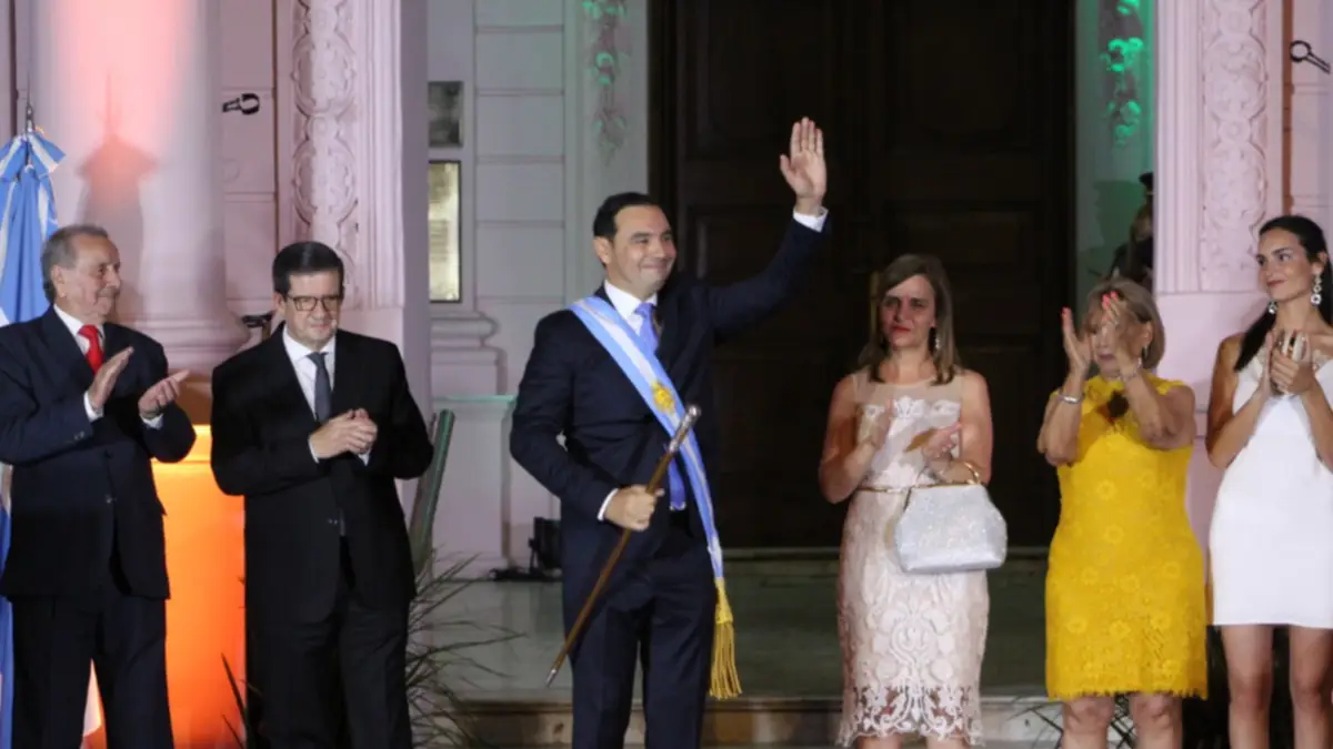Gustavo Adolfo Valdés, mientras tanto, ya asumido, se convertía en el gobernador constitucional reelecto por el mayor caudal electoral que recuerden los escrutinios provinciales. Sus padres y dos de sus hijos, además de su esposa, seguían atentos cada movimiento, parados sobre el escenario montado frente al rosado iluminado de la refaccionada fachada de la Casa de Gobierno, sobre un fondo verde-radical que estilizaba sus galerías centenarias.