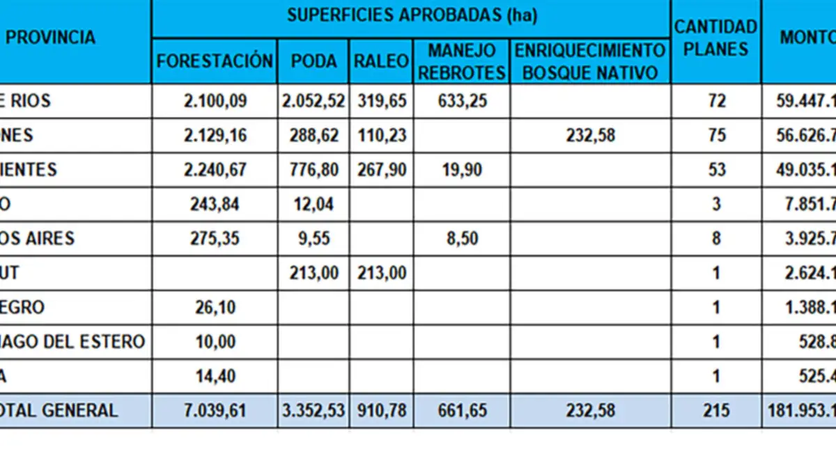 De los nuevos fondos conseguidos, $59,4 millones corresponden a productores entrerrianos, $56,6 millones a similares de Misiones y $49 millones a forestadores de Corrientes.