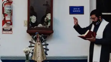 El capellán Juan Andrés Rojas hizo celebración breve con motivo del Día de la Virgen de Luján en el patio de la Agencia Regional Federal NEA Corrientes.