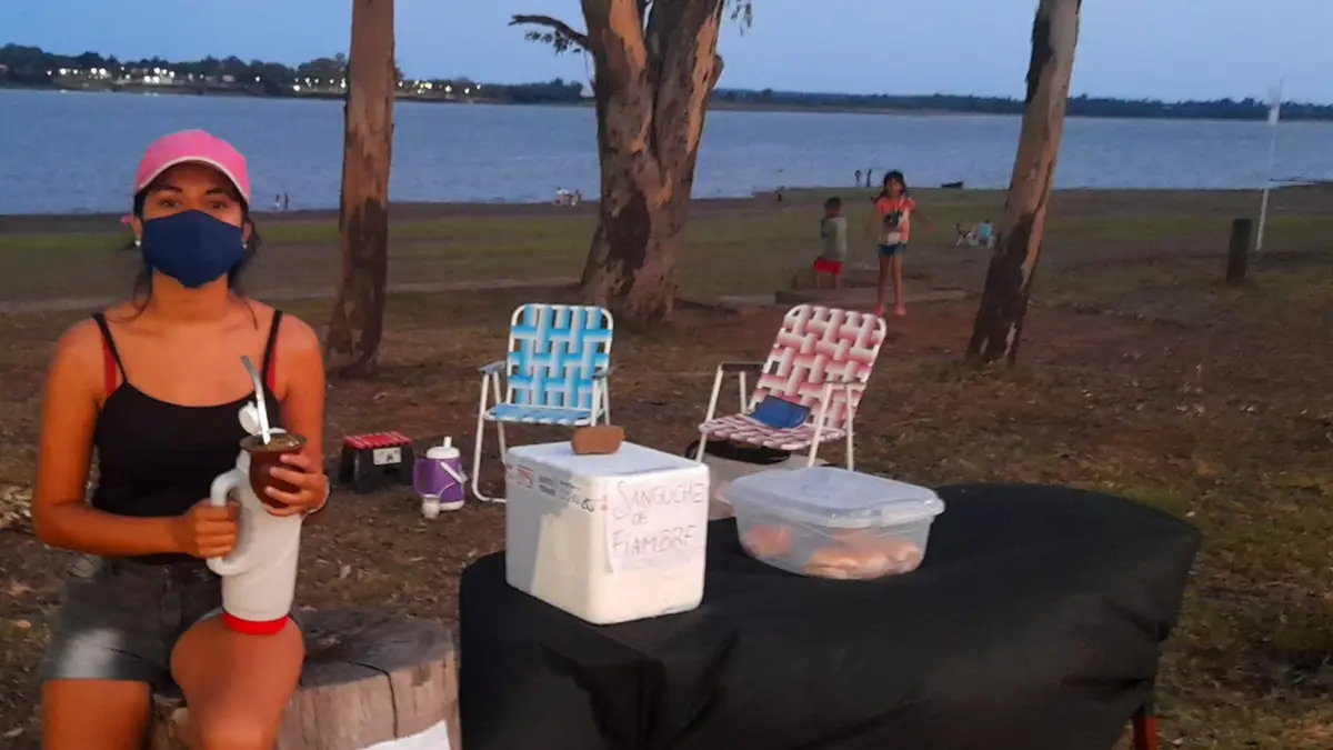 "Empecé hace unas semanas y salgo todos los días a vender sándwich de jamón y queso a la playa de Monte Caseros", contó la joven en diálogo con ellitoral.com.ar.