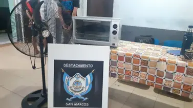 El procedimiento lo realizó este lunes personal del Destacamento San Marcos que demoró a los sospechosos en una motocicleta marca Honda Twister y luego comprobaron que las cosas que llevaban fueron sustraídas de una casa por calle Valerio Bonastre, donde saltaron un muro perimetral.