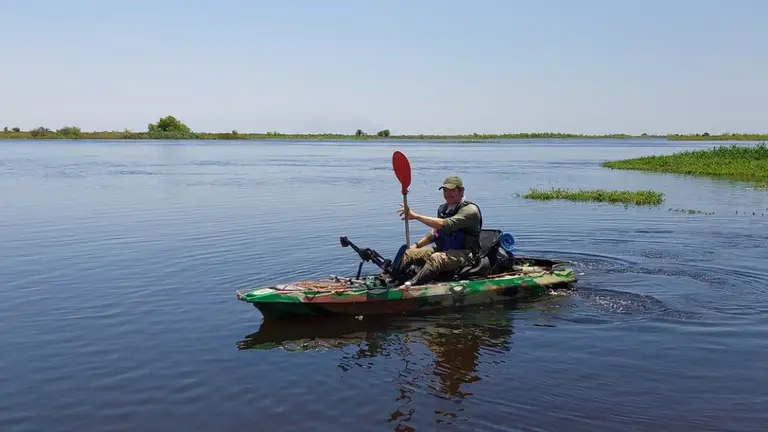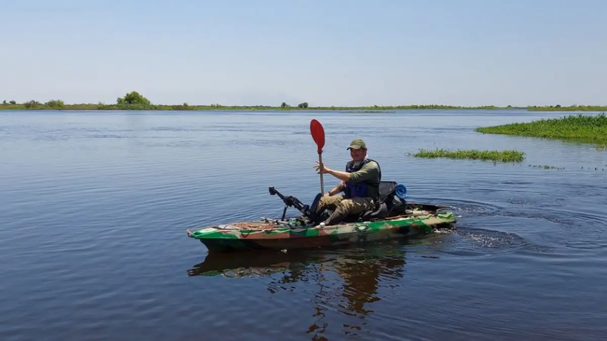 Desembarcó en Esquina este viernes al mediodía en su kayak con remos y pedales, equipado con pantalla solar, elementos de camping, bolsa de dormir, cocina a nafta, botiquín de primeros auxilios y alimentos.