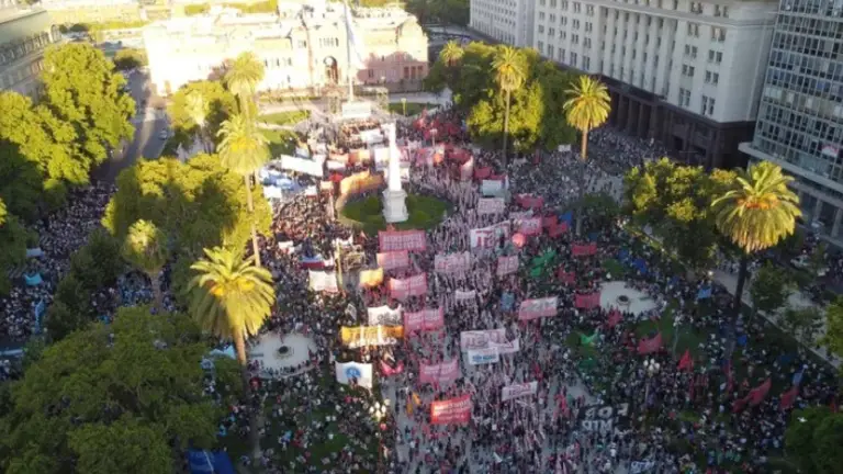 Pasadas las 14, decenas de manifestantes ya habían comenzado a concentrarse en el Obelisco —bajo la consigna de “rechazar el pacto del Gobierno con el FMI”— y hubo caos de tránsito en el microcentro porteño.