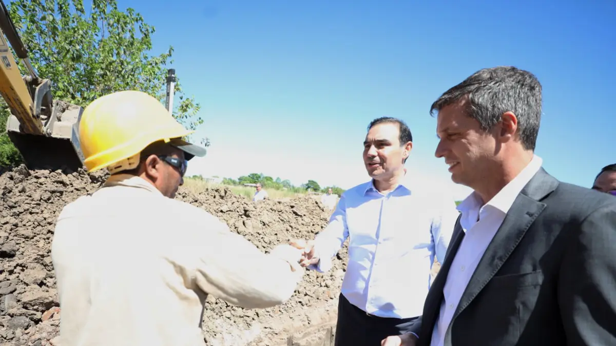 El gobernador Gustavo Valdés, junto con el titular del Ente Nacional de Obras Hídricas de Saneamiento (Enohsa), Enrique Cresto, ayer recorrió los trabajos que se llevan adelante en Riachuelo, y que beneficiará a más de 2900 familias. Las labores consisten en la construcción de red cloacal, más una laguna de tratamiento de líquidos cloacales, entre otras tareas.