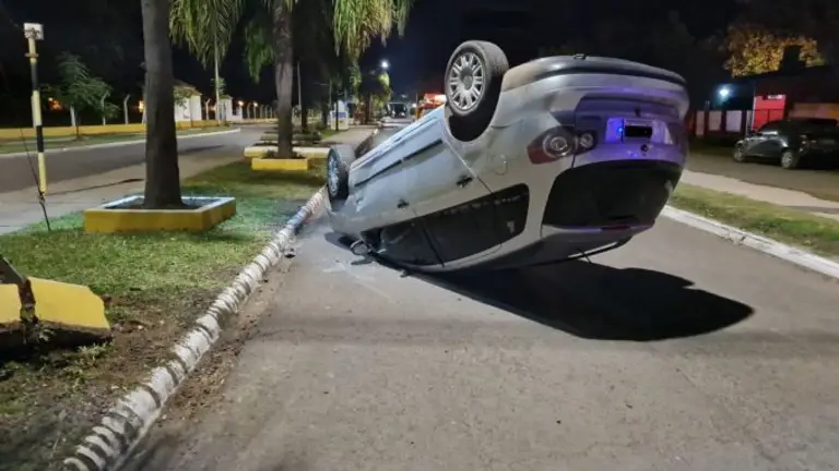 El accidente ocurrió ayer a la madrugada. Un vehículo Volskwagen Suran que se desplazaba por la mano de circulación de este a oeste de la avenida República Oriental del Uruguay despistó y volcó cerca de su intersección a Serradori frente al predio del Ejército Argentino.