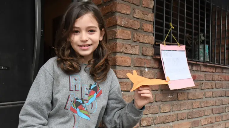 “Otra cosa que me ayuda es ver los drones de mi papá. Eso también me gusta mucho y decidí hacer aviones en papel. El objetivo es juntar plata para el celular, pero también que a la gente le guste los aviones”, agregó.