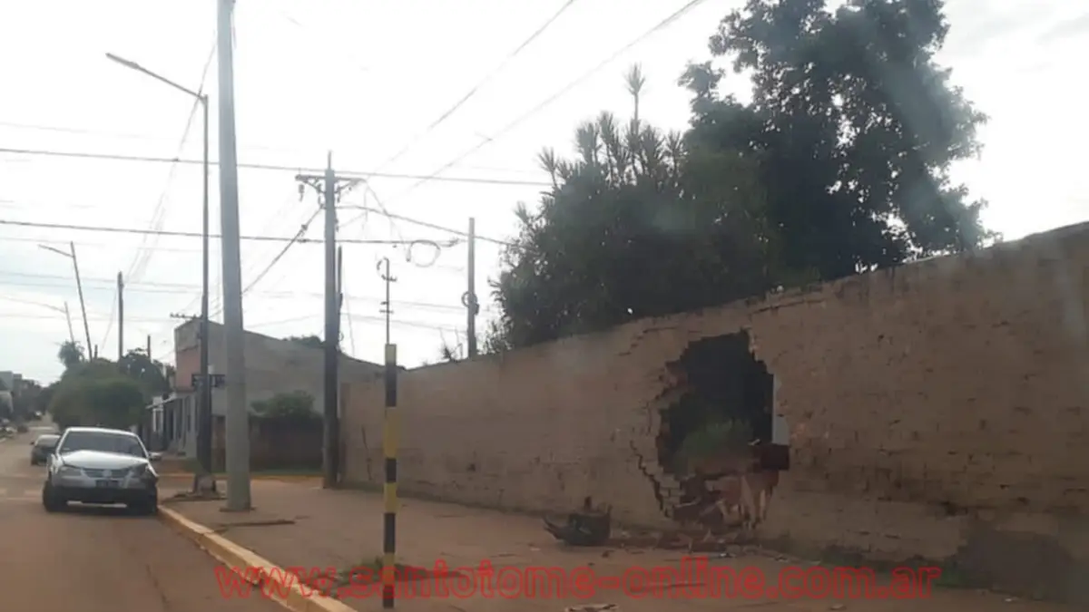 Un automóvil quedó en gran parte destruido al impactar contra el muro del hospital de la localidad de Santo Tomé.