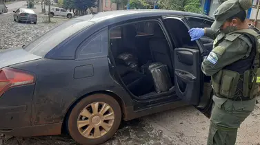 Al momento de la inspección, el can detector de narcóticos, Angie, marcó la presencia de estupefacientes dentro del rodado. De inmediato, los gendarmes hallaron dos bultos en el piso de los asientos traseros y tres más dentro del baúl.