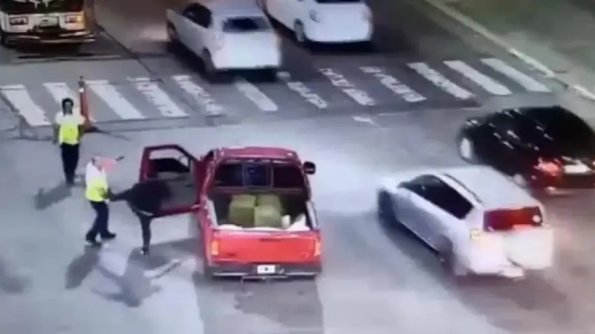 En el video que se conoció públicamente se puede ver a las personas que primero parece que seguirán su camino, pero luego bajan de la camioneta y comienzan a agredir a los inspectores con golpes e insultos.