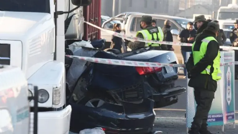 "Cuando pasa por el peaje no se sabe si bien si pinchó un neumático o rompió dirección, pero hay una marca en el pavimento y el Vento perdió el control", dijo a Télam uno de los investigadores judiciales del caso. Fuera de control, chocó contra el camión en la banquina.