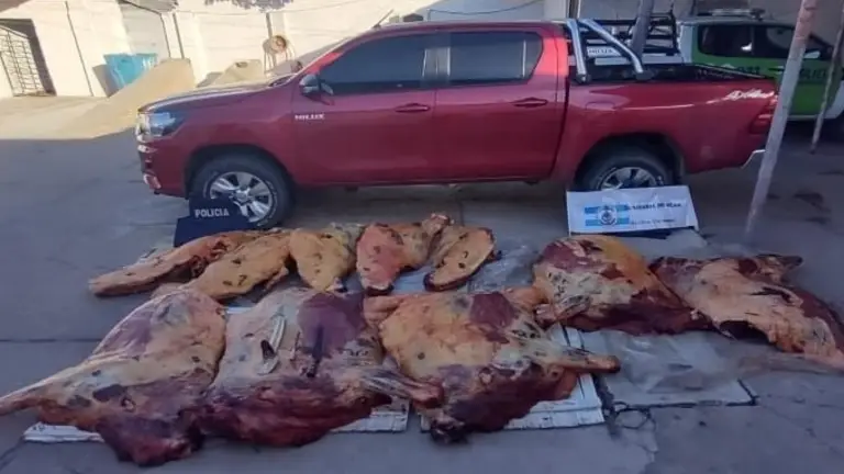 Así, montaron un importante despliegue que posibilitó localizar a la camioneta en cuestión en momentos en que realizaba el trasbordo de la carne a otra camioneta marca VW Amarok, por lo que procedieron a la demora de los conductores: dos hombres de 25 y 56 años