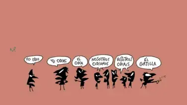 “Yo odio. Tu odias. El odia. Nosotros odiamos. Vosotros odiáis. Él gatilla”. El mensaje, acompañado de una viñeta en blanco y negro, es parte de un documento elaborado con el título de “Pensar y vivir la democracia” difundido por la provincia de Buenos Aires, que desató el rechazo de sectores de la oposición por considerarlo un nuevo intento por generar adoctrinamiento en las aulas.
