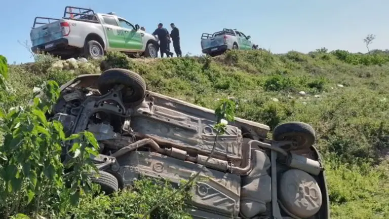 En el momento que transitaba por el terraplén, el conductor perdió el control del vehículo que salió del camino y cayó al al precipicio para terminar volcado.