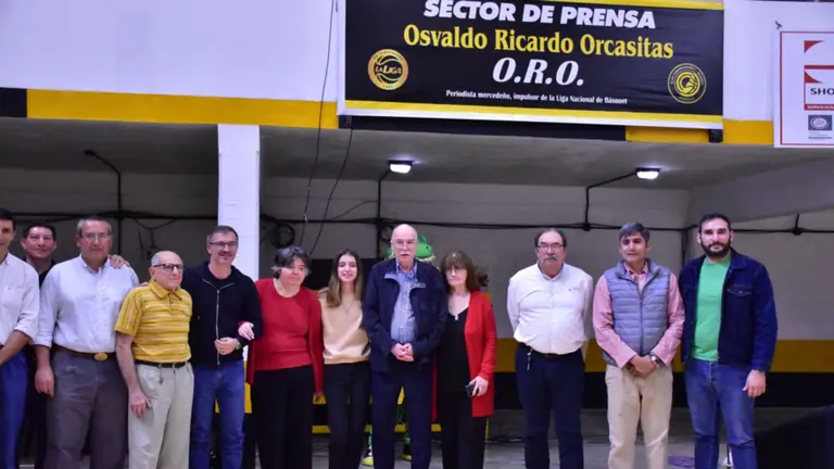 Comunicaciones le rindió homenaje a Osvaldo Ricardo Orcasitas (ORO), periodista de Mercedes de larga trayectoria en la revista El Gráfico y uno de los impulsores de la Liga Nacional de Básquetbol que está cumpliendo 40 años. Se descubrió una placa en el acceso a las cabinas de prensa y un cartel para que su nombre perdure en el tiempo en el sector destinado al periodismo que lleva su nombre.