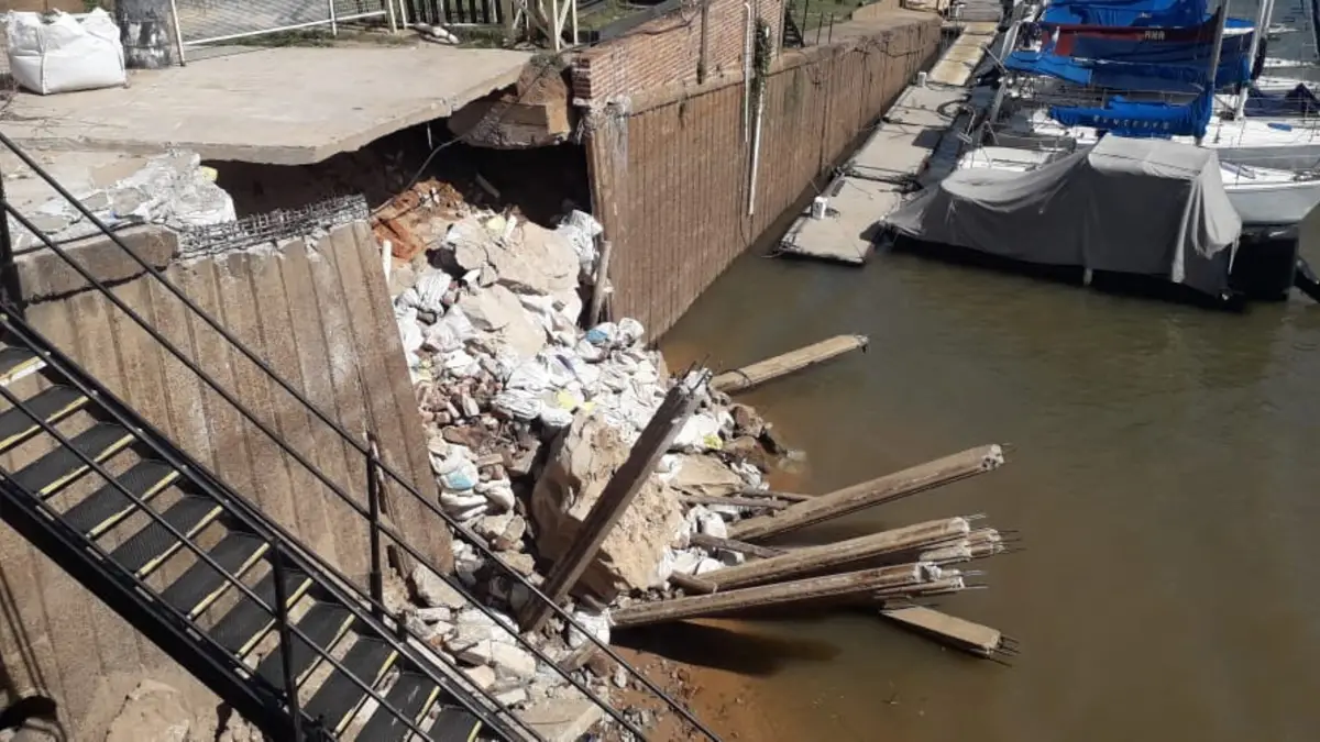 Unos seis metros cuadrados socavó ayer parte de la estructura portuaria en la costa de Corrientes, en un sector que se halla, bajo responsabilidad del Club Yacht Corrientes, quien posee la habilitación de un permiso de uso cedido por Provincia.