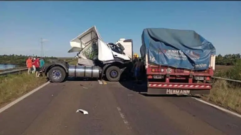 Un choque frontal entre dos camiones se registró este miércoles en cercanías de la localidad correntina de Santo Tomé, informaron fuentes policiales.