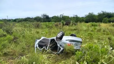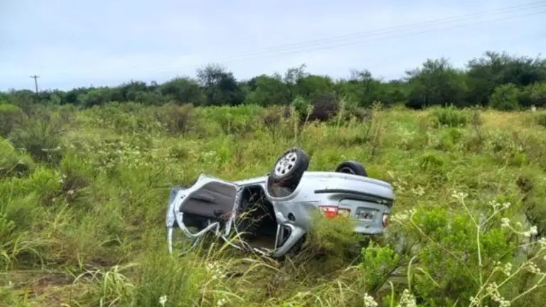 Uno de los automóviles un Chevrolet Corsa, en el que viajaban dos personas. El vehículo por las condiciones climáticas volcó atravesándose en el cantero central para terminar en un desagüe de la mano contraria.