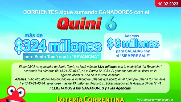 Corrientes sigue sumando ganadores con el Quini 6