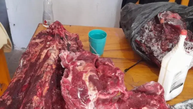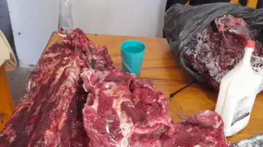 En uno de los lugares secuestraron trozos de corte cárnicos, de un animal bovino, que pesaron 54 kilogramos; en otro fueron 256 kilogramos; y en el tercer inmueble un total de 24 kilogramos, además de tres cueros de animales ovinos.