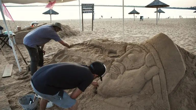 Artistas de distintos puntos del país disputan hoy el 1° Concurso de esculturas en la arena y el 3° Encuentro de la disciplina que se desarrolla en la costanera sur. Las obras podrán ser visitadas de 9 a 19 en la playa Arazaty. Los escultores iniciaron la competencia el pasado viernes y hoy se define el ganador, que será elegido por el público.
