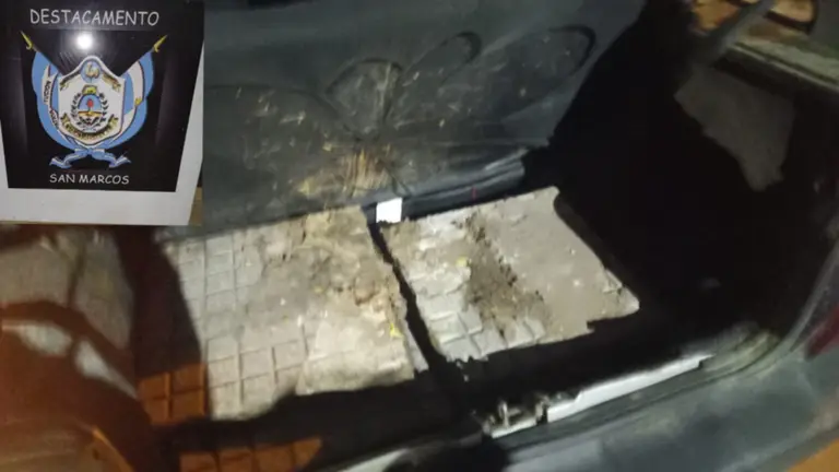 Tomó intervención personal del Destacamento San Marcos, que observó un Fiat Uno que huyó en dirección sur. Localizaron el automóvil en las 328 Viviendas, y hallaron también al conductor, una persona de 62 años. En el baúl del vehículo, encontraron seis baldosas de cemento que habían sido sustraídas un rato antes.