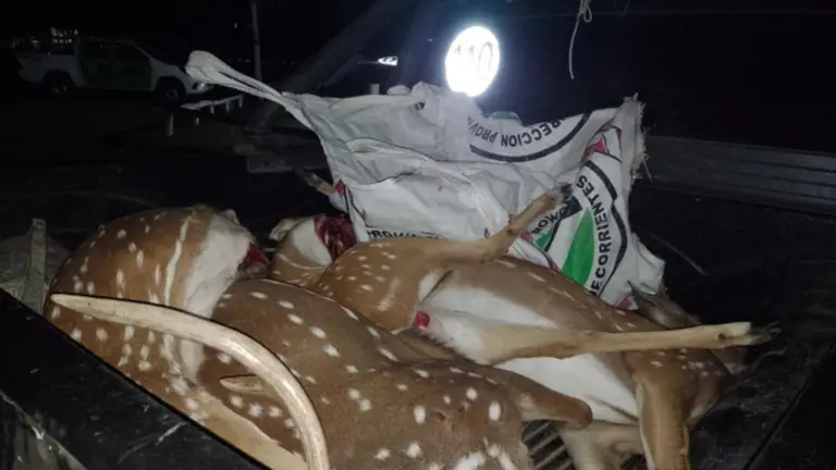 De esta manera, los efectivos pudieron observar que en la caja del rodado, llevaban 5 ciervos enteros muertos, en principio producto de la caza furtiva.