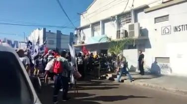 Manifestantes del Movimiento de Trabajadores Excluidos (MTE) intentaron ingresar este jueves a las oficinas del Instituto de Vivienda de Corrientes (Invico) ubicadas en la calle La Rioja y San Martin.