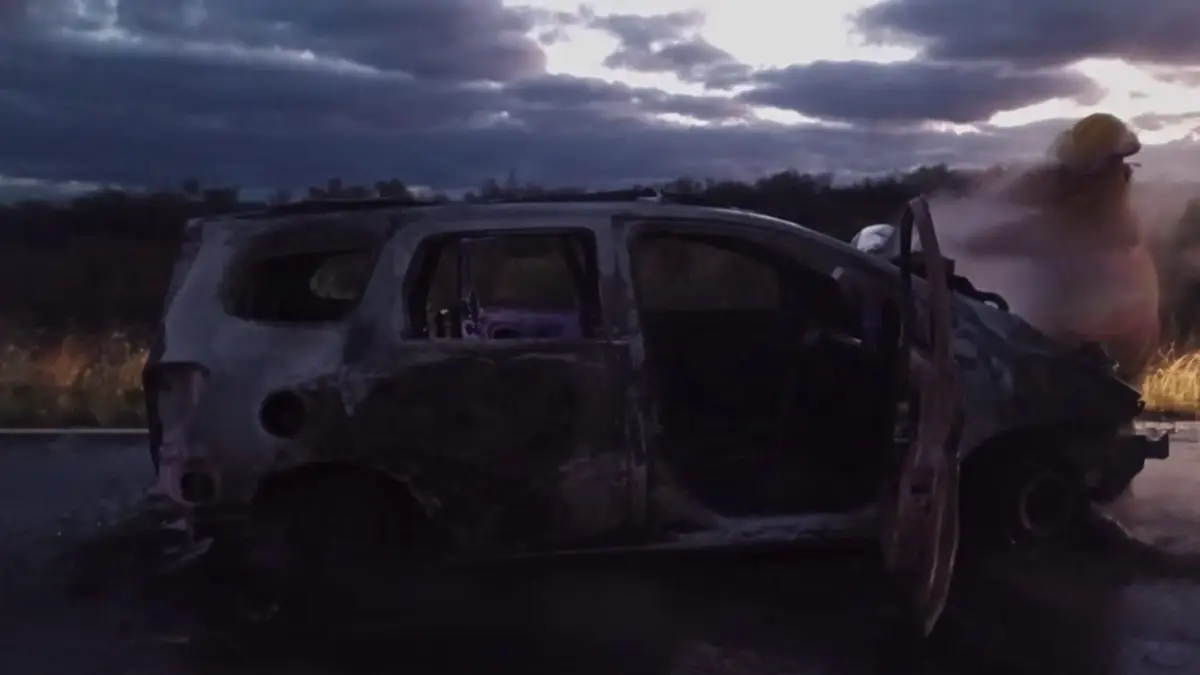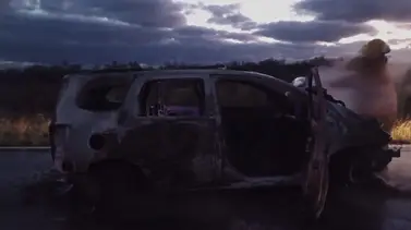 Por el impacto el Spin se prendió fuego en plena ruta, pero sus cinco ocupantes lograron salir.