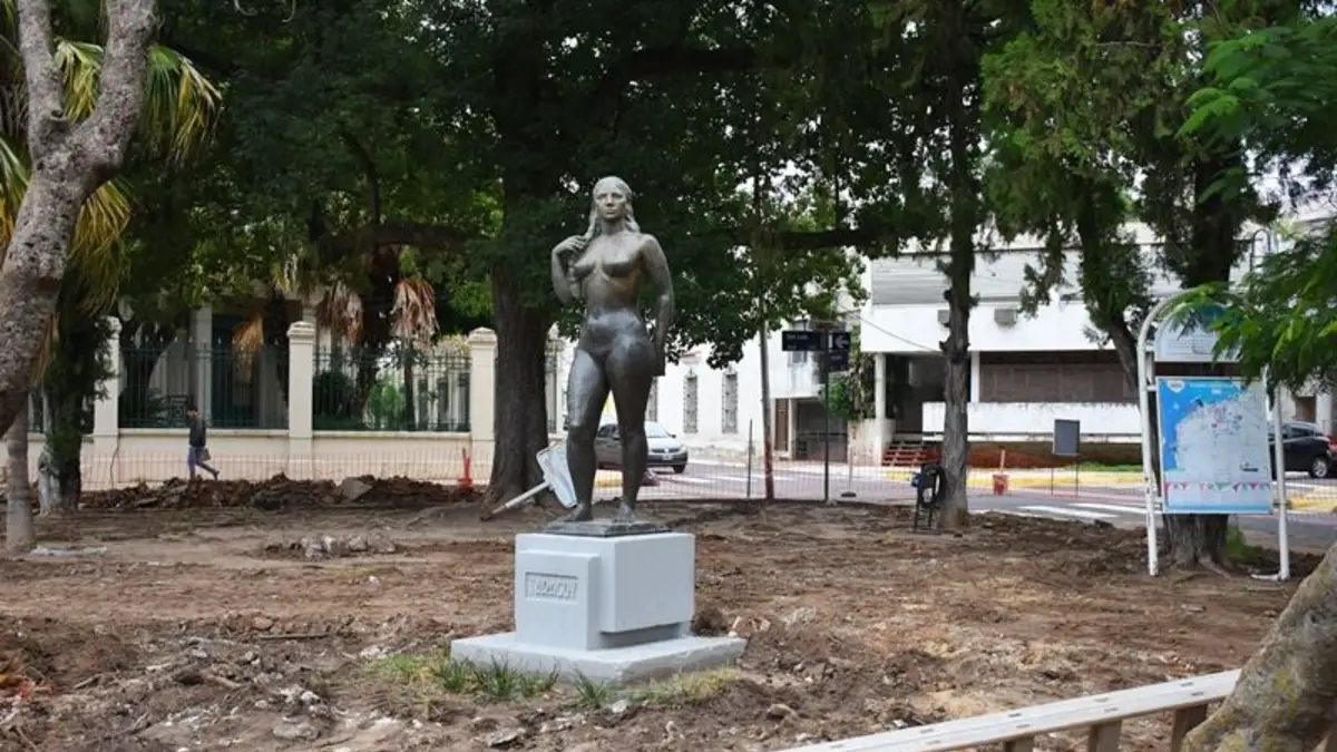 La escultura tributo a la mujer guaraní que se encuentra en el centro de la plazoleta será restaurada ya que actualmente presenta un deterioro muy notorio.