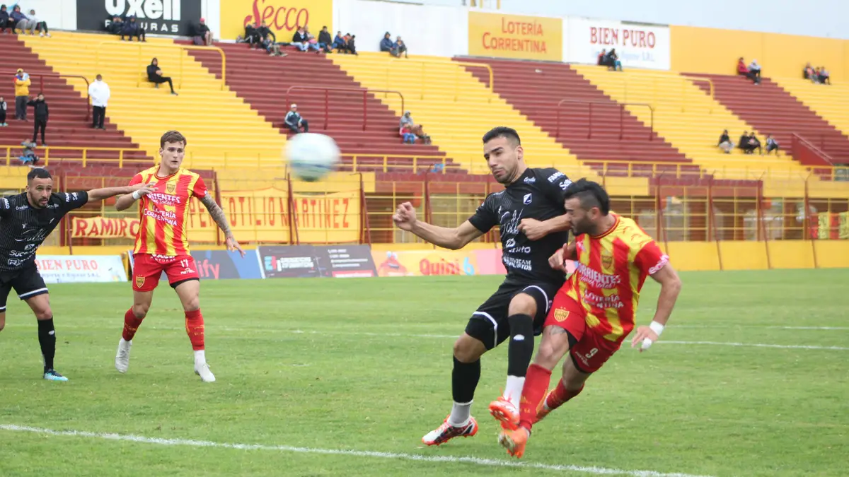 La primera aproximación del equipo correntino llegó luego de un centro por la izquierda de Alejandro Leani, quien ayer suplió de buena manera al suspendido Joaquín Livera. El envío fue despejado con los puños por Germán Salort, quedándole el rebote en la puertas del área al pibe, Jonathan Gómez, que levantó por arriba del horizontal el remate con la pierna menos hábil.