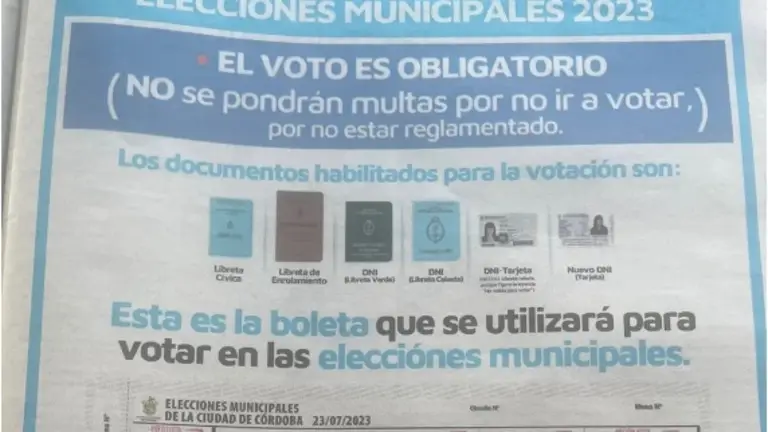 “Elecciones municipales 2023: El voto es obligatorio (no se pondrán multas por no ir a votar, por no estar reglamentado)”, precisó la solicitada difundida este sábado -a horas de las elecciones de mañana- y que estuvo firmada por la Junta Electoral Municipal.