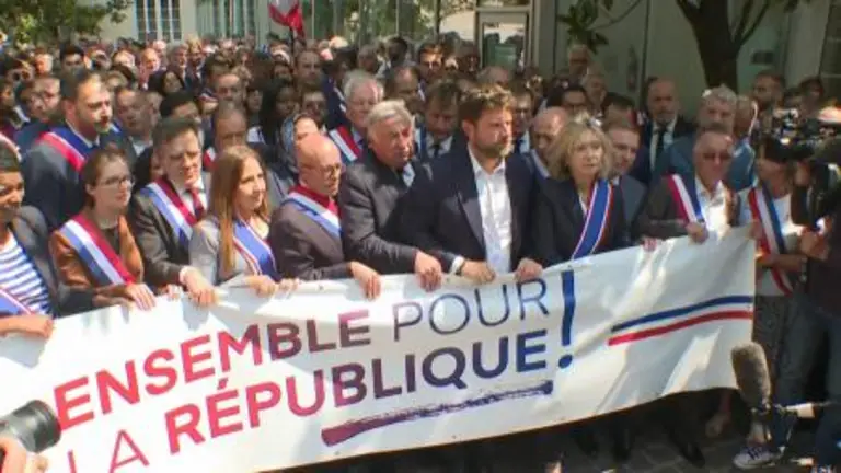 La intervención del alcalde de la ciudad donde fue asesinado Nahel fue parte de concentraciones convocadas por la Asociación de Alcaldes de Francia en solidaridad con el alcalde cuya casa fue atacada el sábado en el suburbio parisino de L'Hay-les-Roses.