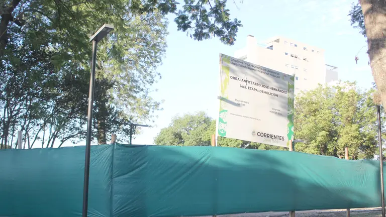 El anfiteatro José Hernández fue vallado nuevamente para dar inicio a la construcción de espacio público. Esta semana se colocó el obrador y la descarga de materiales para comenzar con las tareas. Por lo que ayer iniciaron los trabajos de suelo, con la correspondiente nivelación, obras que continuarán la semana que viene.