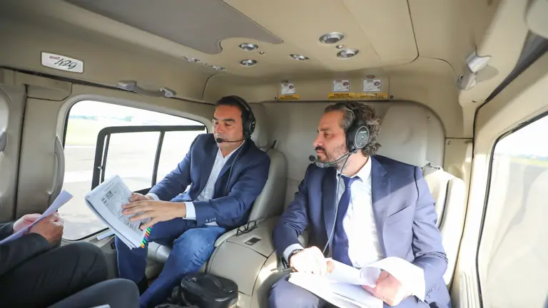 Tras la bienvenida, las autoridades pasaron a un salón dentro del aeropuerto, donde el gobernador correntino tenía preparada una presentación con la cual le explicó a Cafiero en una pantalla cuál es el conflicto que rodea a la Isla Apipé, utilizando mapas de la zona que luego sobrevolaron.