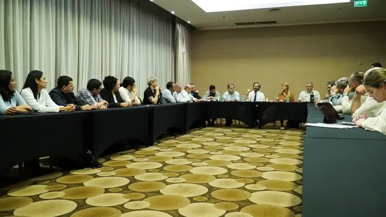El ministro de Relaciones Exteriores y Culto, Santiago Cafiero durante su visita a Corrientes y de cara a las elecciones Primarias del 13 de agosto se reunió con los legisladores provinciales y nacionales, legisladores electos, candidatos al Congreso de la Nación, Consejeros de la Entidad Binacional Yacyretá, líderes sociales y autoridades de organismos nacionales en Corrientes.