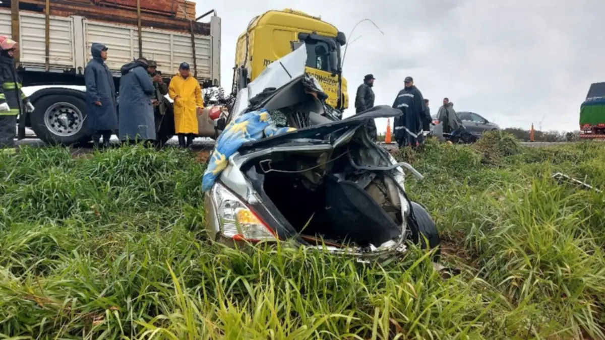 El gravísimo accidente se registró cerca del paraje Cuay Grande. Luego del choque, la pareja quedó atrapada dentro de la aplastada cabina del automóvil, entre los hierros retorcidos.